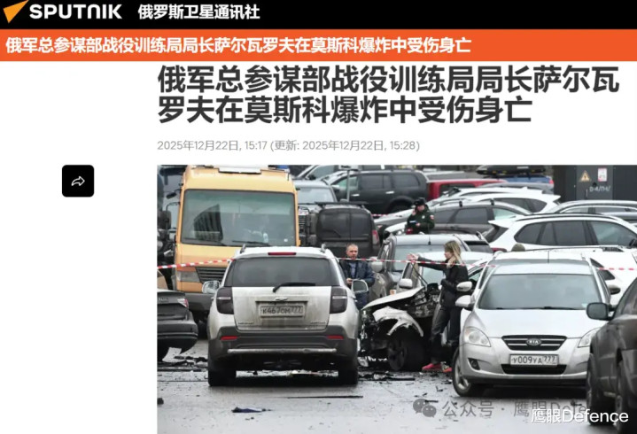 当地时间12月22日早晨7点钟左右,莫斯科南部再次发生汽车爆炸事件,俄联邦侦查委员会发言人佩特连科确认,“俄罗斯武装力量总参谋部战役训练局局长法尼尔·萨尔瓦罗夫中将在爆炸中受伤身亡”,佩特连科称已按照谋杀军人罪立案调查,其中一个可能的谋杀情节与乌克兰情报部门策划的“犯罪活动”有关,但俄罗斯政府尚未直接指责是乌克兰情报部门制造了这起“定点清除”事件,乌克兰情报部门也没有对此发表任何评论。