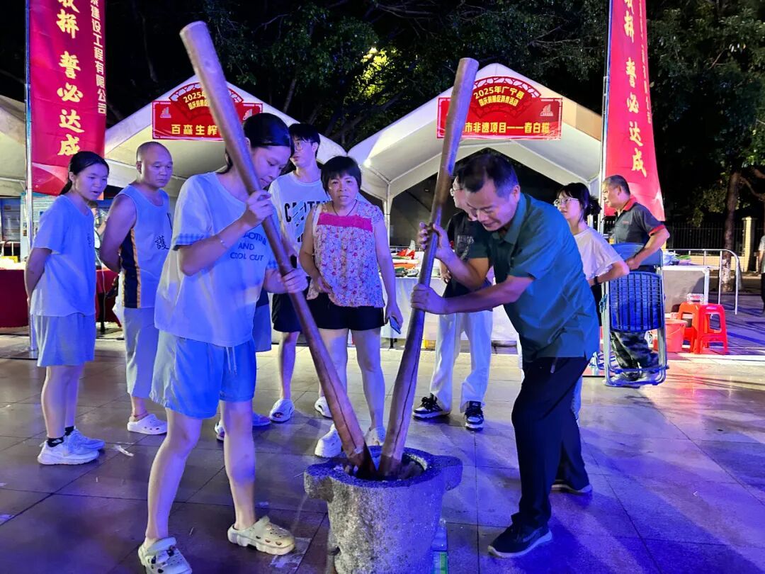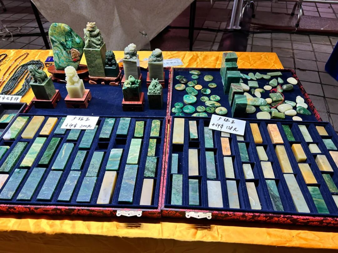 广场周边同步开设的特色展销摊位,涵盖宾供月饼、广绿玉、竹编非遗、舂白糍等本土特色品类,让这场武术盛宴兼具文化味与烟火气。宾供月饼展位上,莲蓉、五仁月饼印着 “国庆献礼”,试吃吸引家庭观众选购;广绿玉展位摆件、饰品齐全,摊主讲解文化价值与鉴别方法;竹编非遗展位,传承人现场编文创,孩子围观,市民争相购买,为武术盛宴添文化味与烟火气。