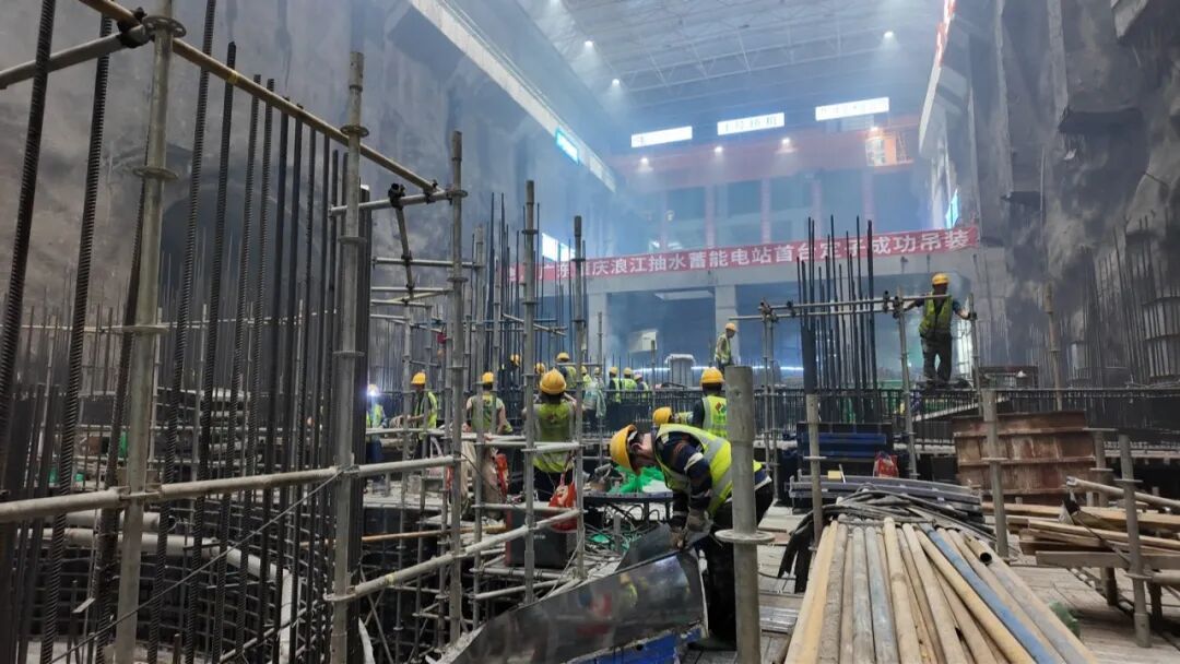 在地下400余米深处的施工现场,4台机组的设备安装正全面推进。工人们正在进行水道防渗工程施工。在陆面工地上,大货车、推土机、挖掘机等运转不停、轰鸣不断,上水库大坝填筑、下水库大坝填筑等正同步进行施工,机械声与工人的吆喝声交织成独特的“节日交响”。